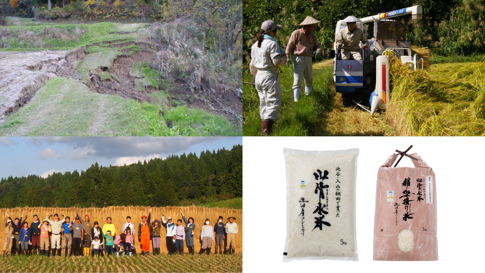 中越大震災では多くの棚田の畦が崩れ、中には3年かけて直し、耕作を復活した場所もあります。
